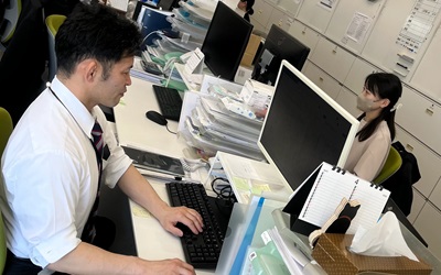 先輩職員の元で、伝票の処理など簡単な業務から習得してきます。分からないことはすぐに聞ける環境です!