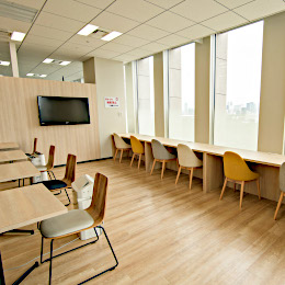リフレッシュできるカフェテリアスペース。きれいな眺望も楽しめます。