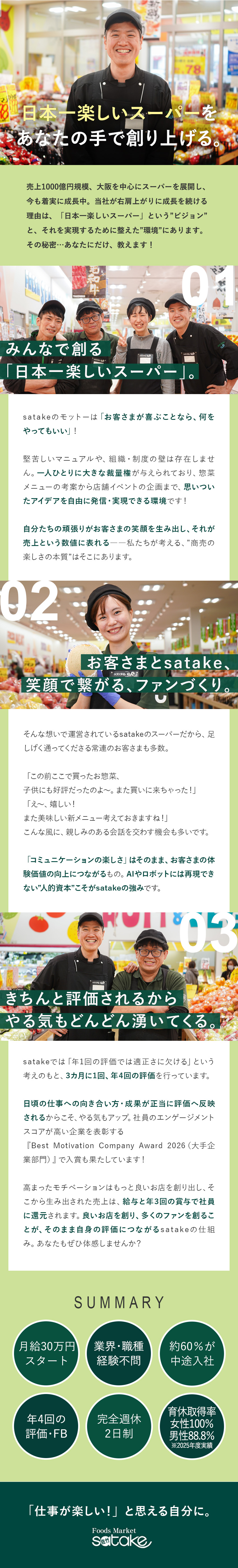 私たち佐竹食品は、「日本一楽しいスーパー」を本気で目指しています。