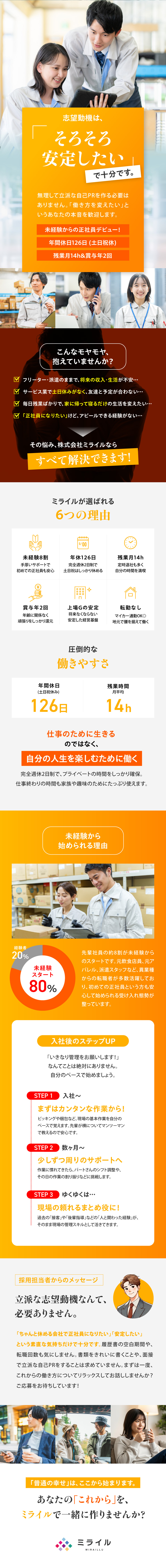 「未経験だから」と好条件を諦めていませんか?上場グループの基盤で、休める・育てる・長く続く正社員へ。