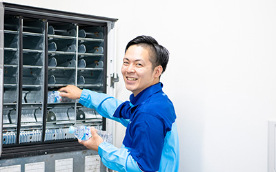3~4カ月ほどでサントリーの自動販売機の商品補充、ランナップの変更など、ルートセールスの一通りの仕事を経験できます。
