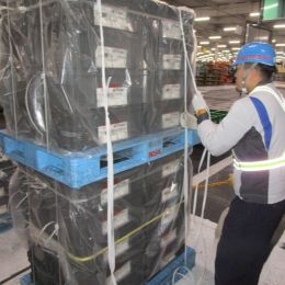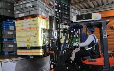 必要な部品を保管場所から指定場所へ移動し、トラックへ積み込みます。