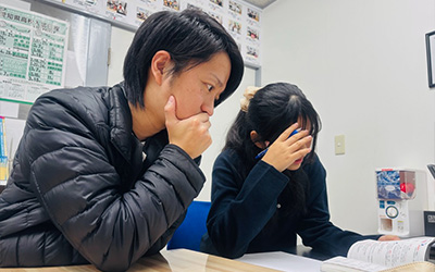 塾である以上、成績という結果は求められます。そのため、テスト前には過去問を見ながら対策を考えたり、生徒に合った進め方を工夫したりと、準備が必要になります。また、生徒の意識が重要なため、知識だけでなく勉強への向き合い方のサポートも必要。その分、結果が出たときは生徒と一緒に喜べるのがこの仕事の魅力です。