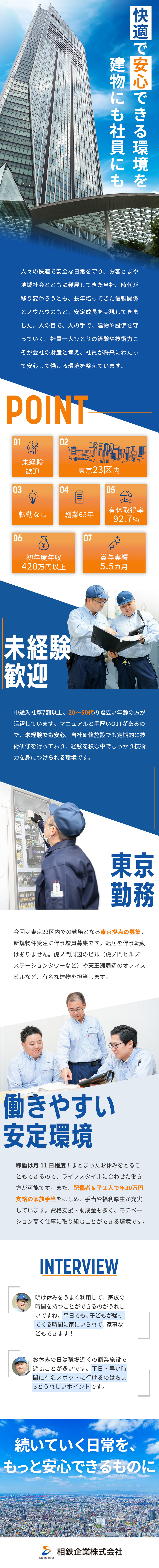 東京23区内の設備管理/未経験歓迎/賞与実績5.5ヵ月分