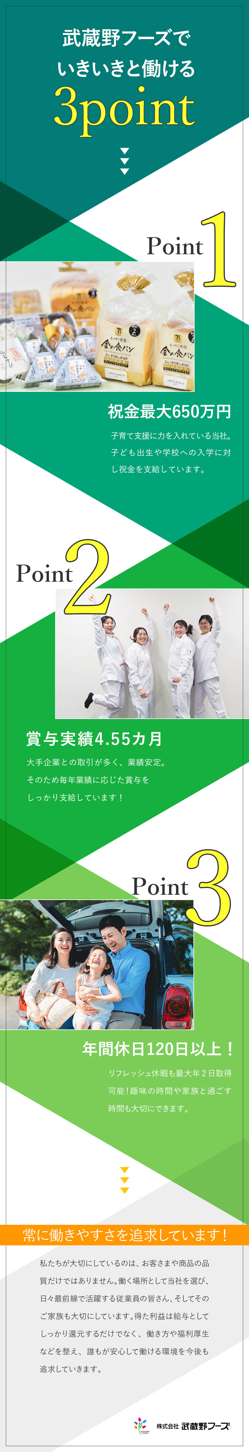 人気パン製品の製造管理/賞与4.55カ月/祝金最大650万円