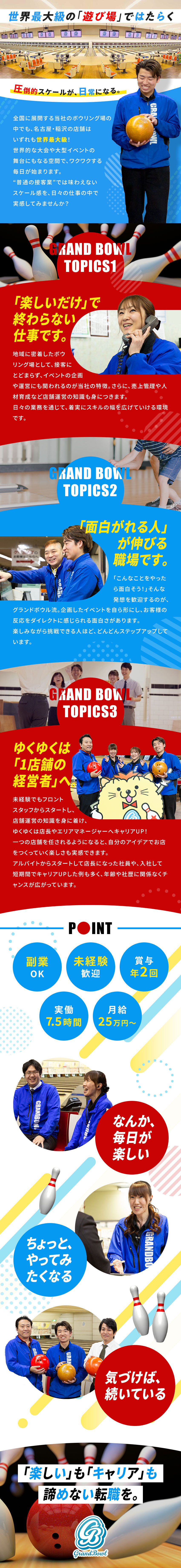 ボウリング場の店舗運営スタッフ/未経験でも月給25万円~