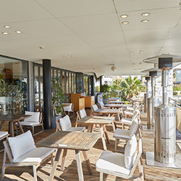 明るく開放的な空間で、テラス席はペットの同伴も可能。