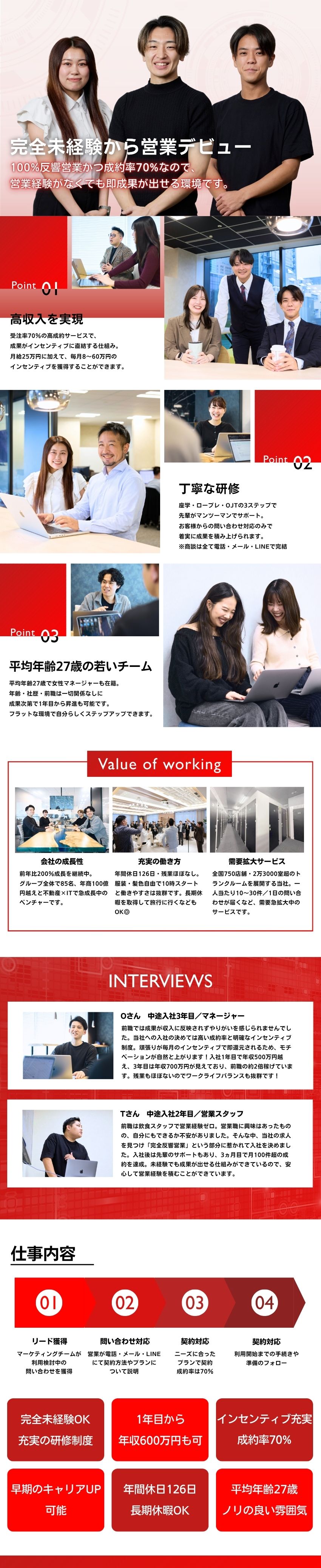 全員が営業未経験でスタートしており、営業経験は一切問いません!