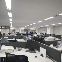デスクは広々としており、作業に集中できます◎ベテランの先輩たちも近くにいるので、相談しやすい環境♪