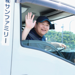 前職は外壁をつくる職人だったのですが、運転が好きだったので未経験で入社。もちろん最初は不安でしたが、前職に比べて時間の余裕ができましたし、一人で気楽に運転できるので精神的な負担が少なくなりました!