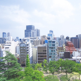 本社/南堀江公園前の好立地、桜の季節はお昼にお花見もできます。
