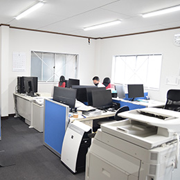 就業場所のエムテックオフィスは、1階が製造工場、2階がオフィスになっていますので、各案件の進捗などもすぐに確認できます。