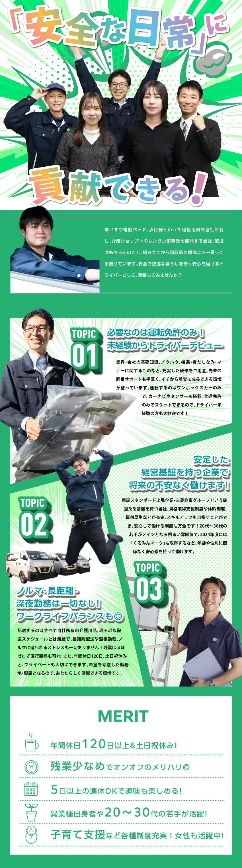 福祉用具のルート配送/未経験歓迎/土日祝休み/20代活躍中