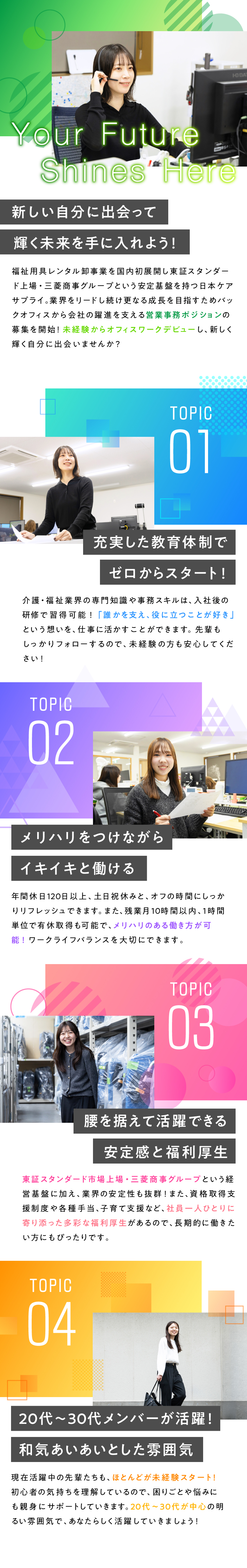 福祉業界で活躍する営業事務/未経験歓迎/土日祝休/残業少なめ