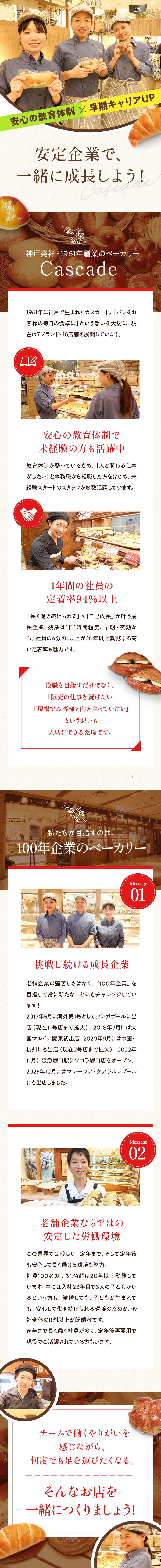 社歴関係なく、積極的にアイデアが発信できるため、日々さまざまなアイデアが飛び交うそうです。これまでの経験を活かしながらカスカードでの販売スタイルを学んだ後に店長を目指したり、店長としての実績・能力次第では複数店舗のエリア統括店長や、新店立ち上げにも携わるチャンスもあります。あなたのアイデアが魅力的なお店を作り上げ、さらに会社全体の売上にも大きく貢献できる、そんなやりがいがあるでしょう。