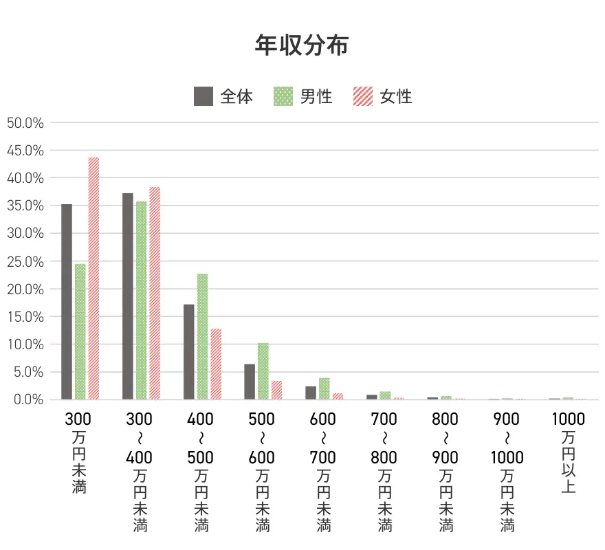 | 販売/サービス系 | 340万円 | 375万円 | 313万円 |