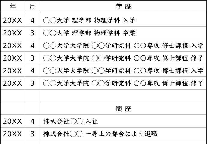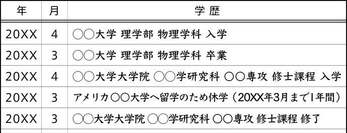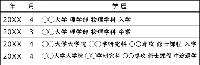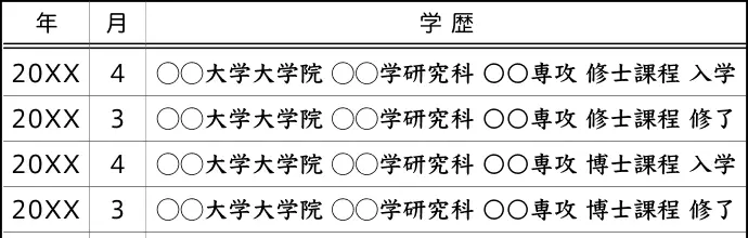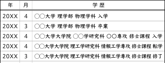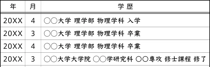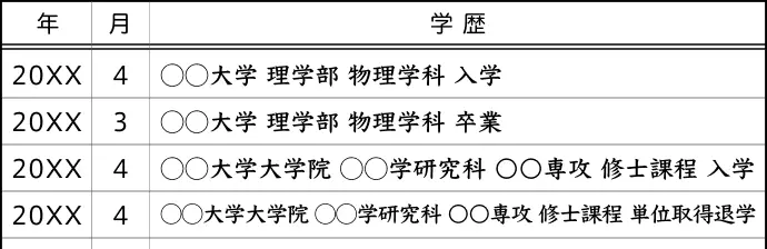 博士課程を修了しているなら、修士課程と博士課程の両方を記載します。学歴欄の書き方は以下のとおりです。
