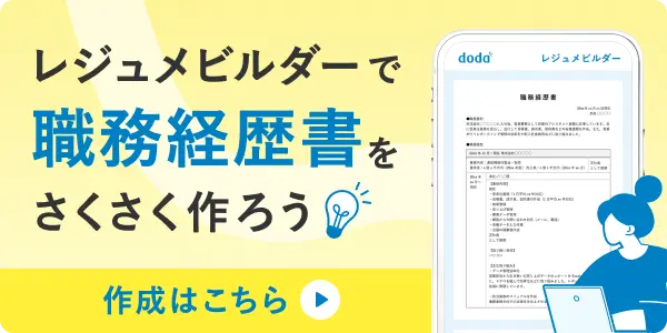 サンプルをダウンロードしたけどやっぱり職務経歴書や履歴書を書くのは難しいと悩んでしまう人は、dodaのオリジナルツール「レジュメビルダー」や「履歴書作成ツール」がおすすめです。