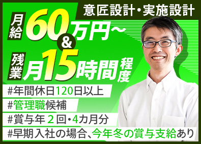 【対象となる方】 【学歴不問/要普免(AT限定可)】意匠設計・実施設計が可…